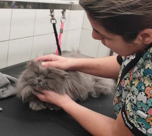 Avaliar se o cão tem nós (embaraços) e propor a solução segura.